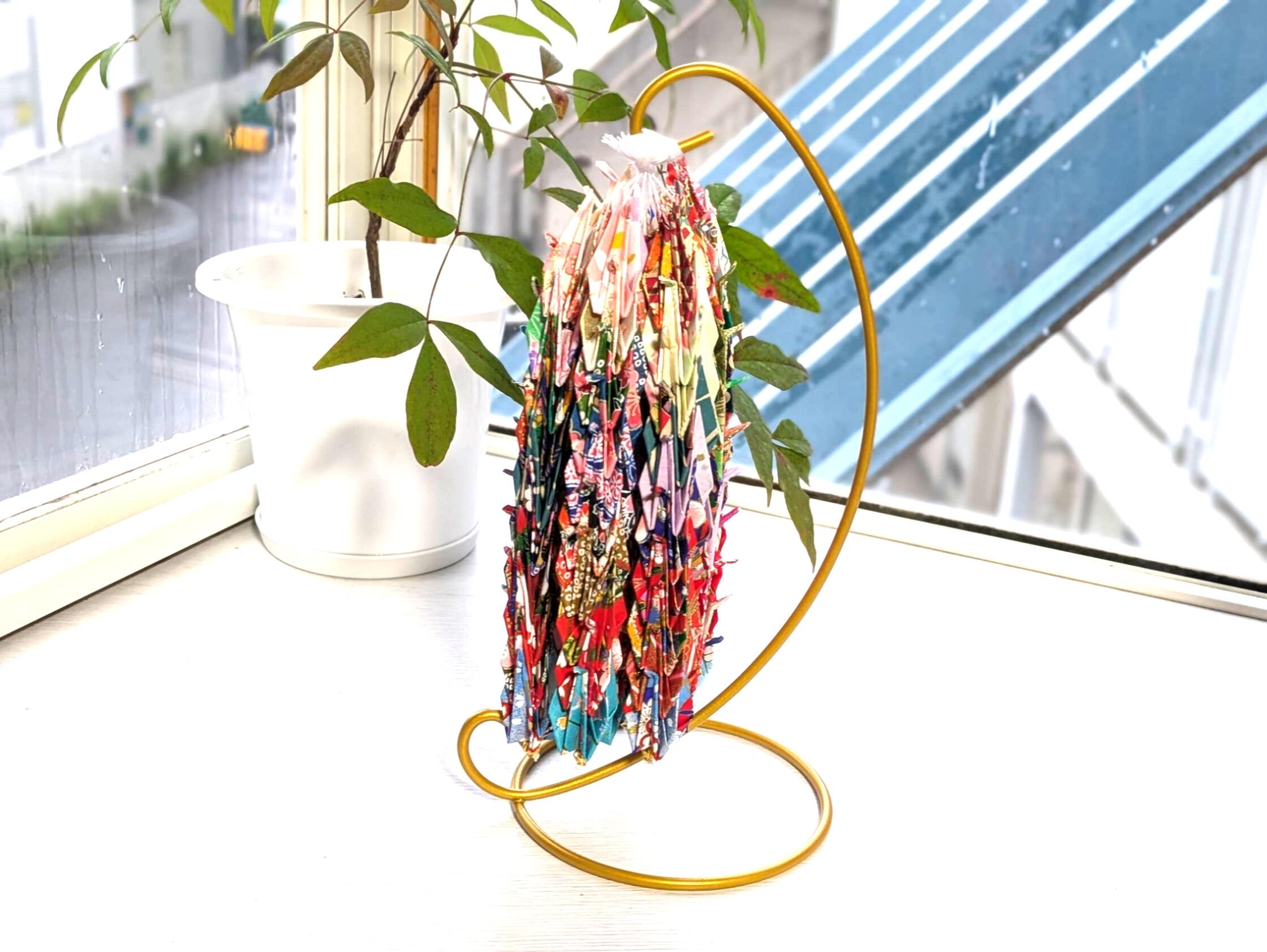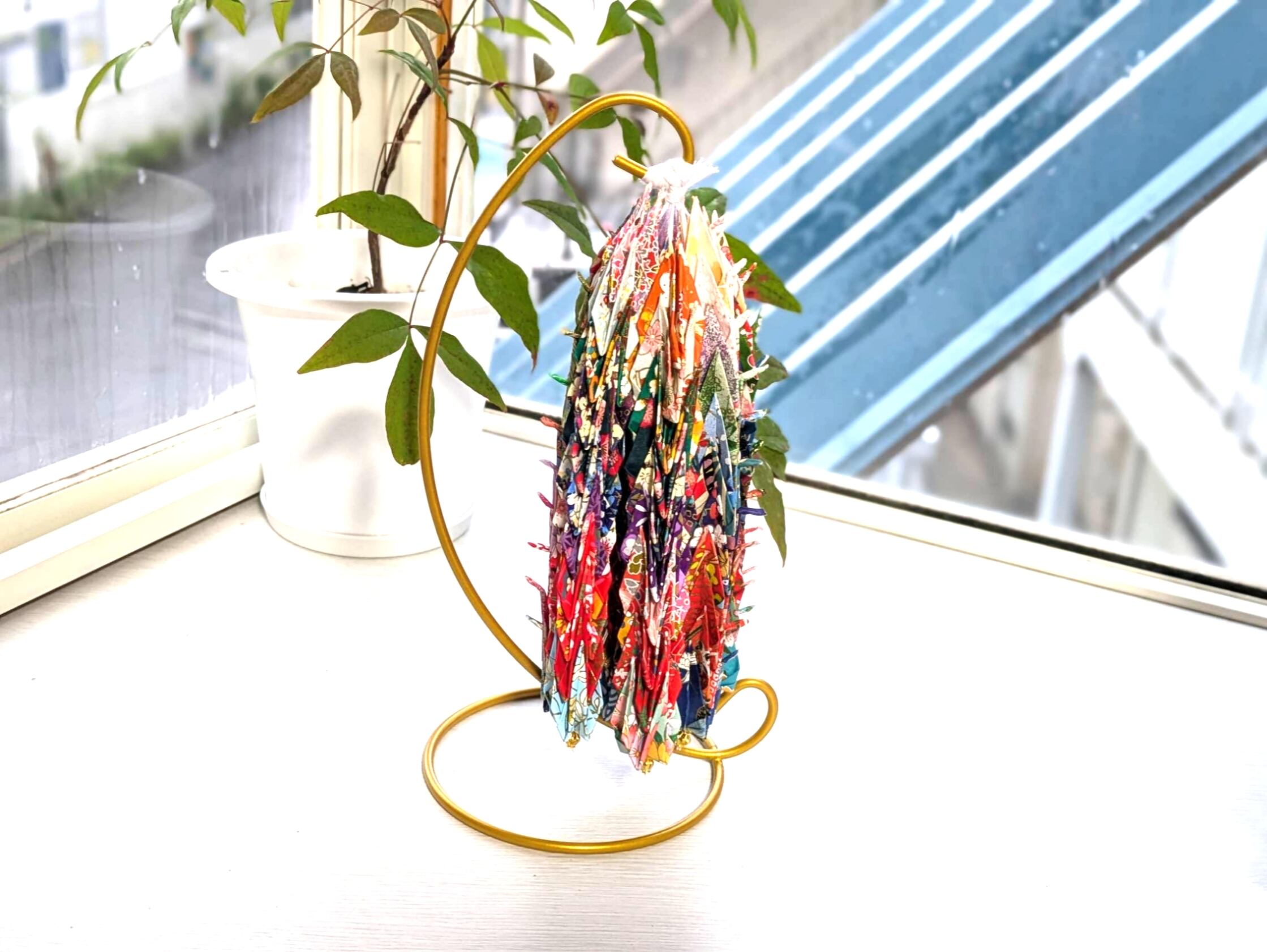 折り鶴の吊り台付きインテリアです(о´∀`о)